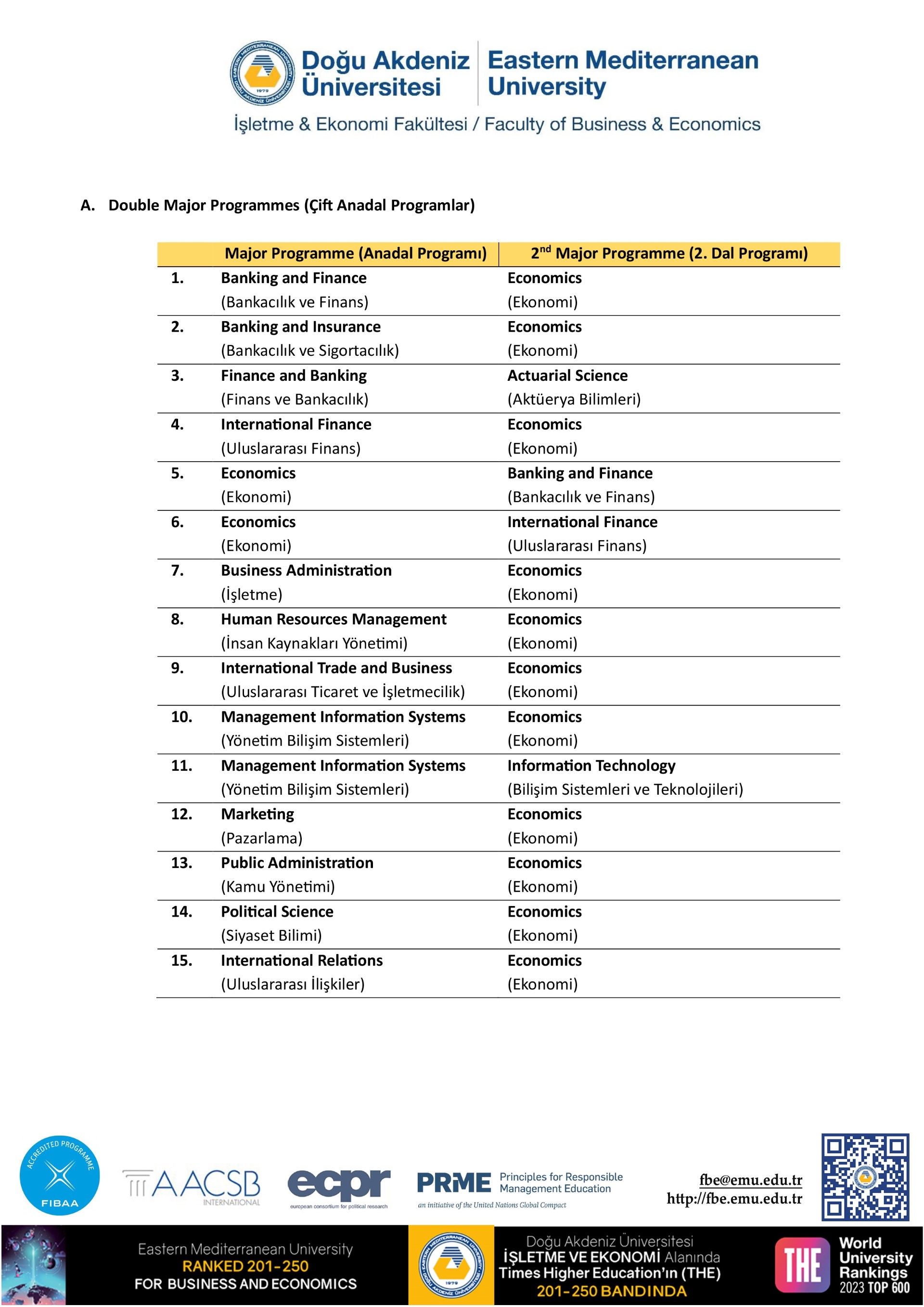 Double Major and Minor Programmes Faculty of Business and Economics EMU