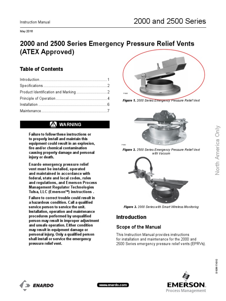 EMERSON Enardo 2500 Emergency Pressure Relief Vents Instruction Manual