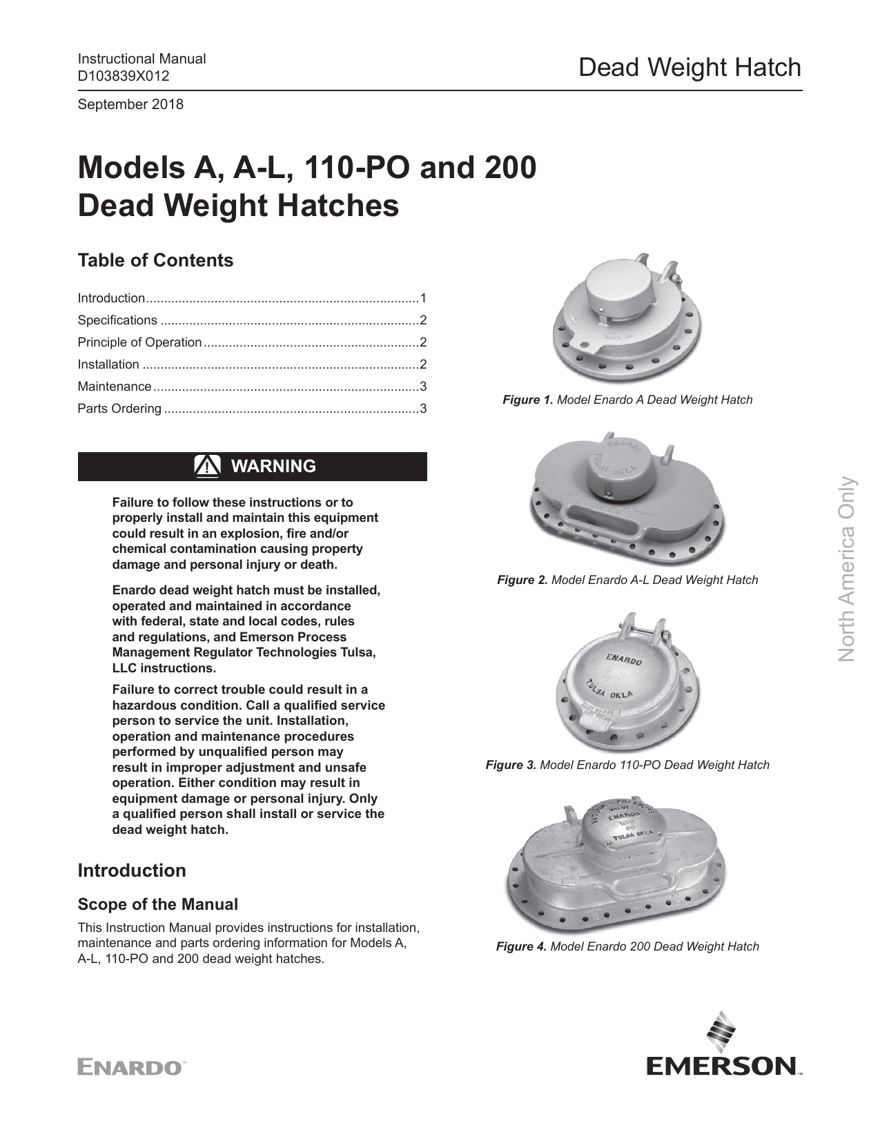 EMERSON Enardo ES665 Series SpringLoaded Thief Hatch Instruction Manual