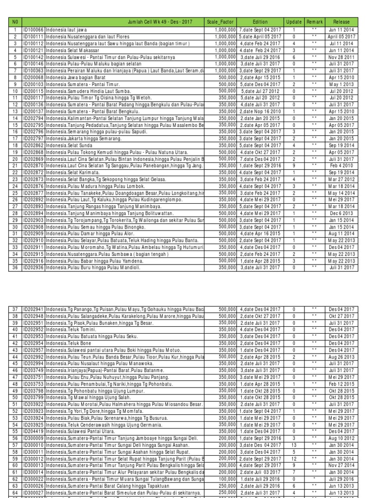 List Katalog Peta Laut ENC Week 49 Des 2017 PDF