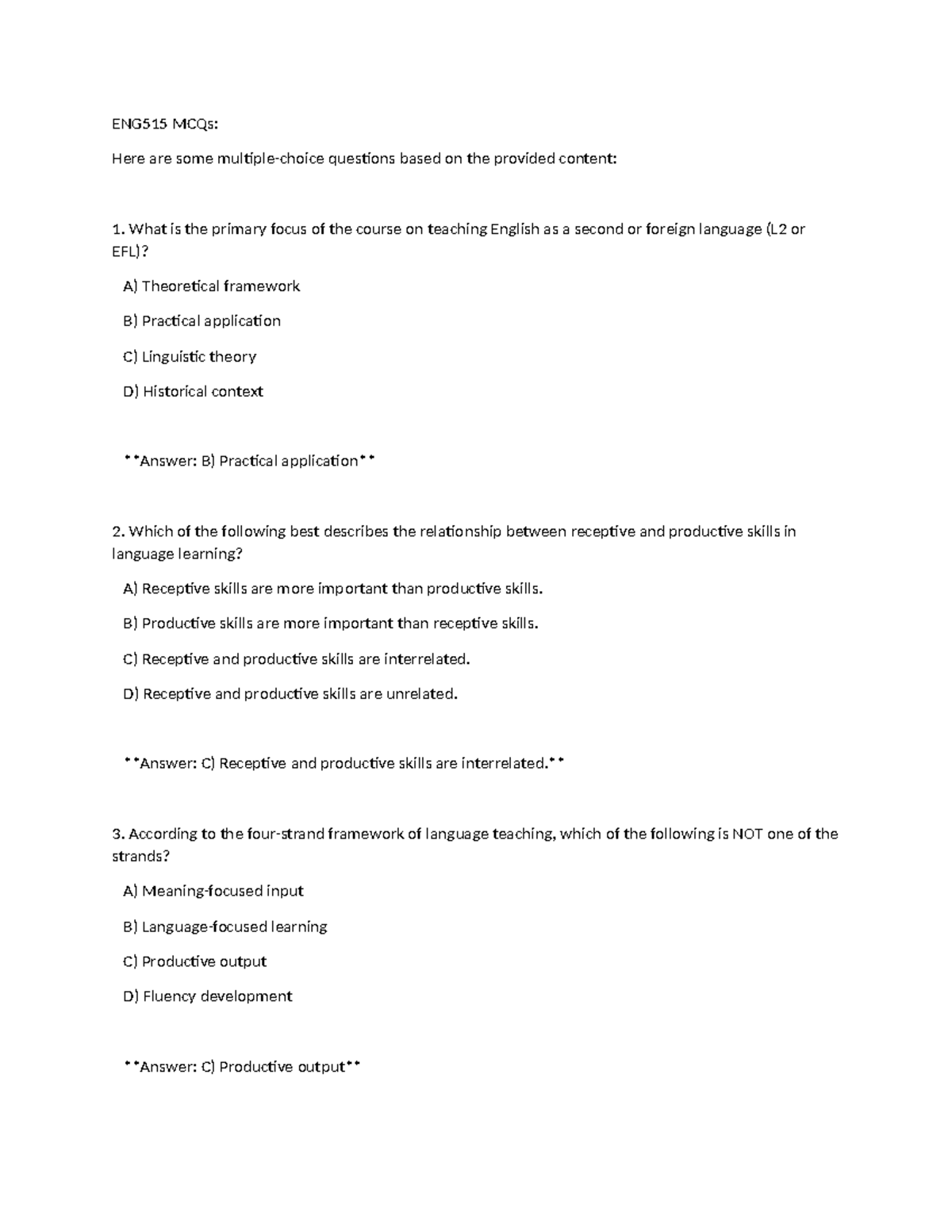 ENG515 MCQs ENG515 MCQs Here are some multiplechoice