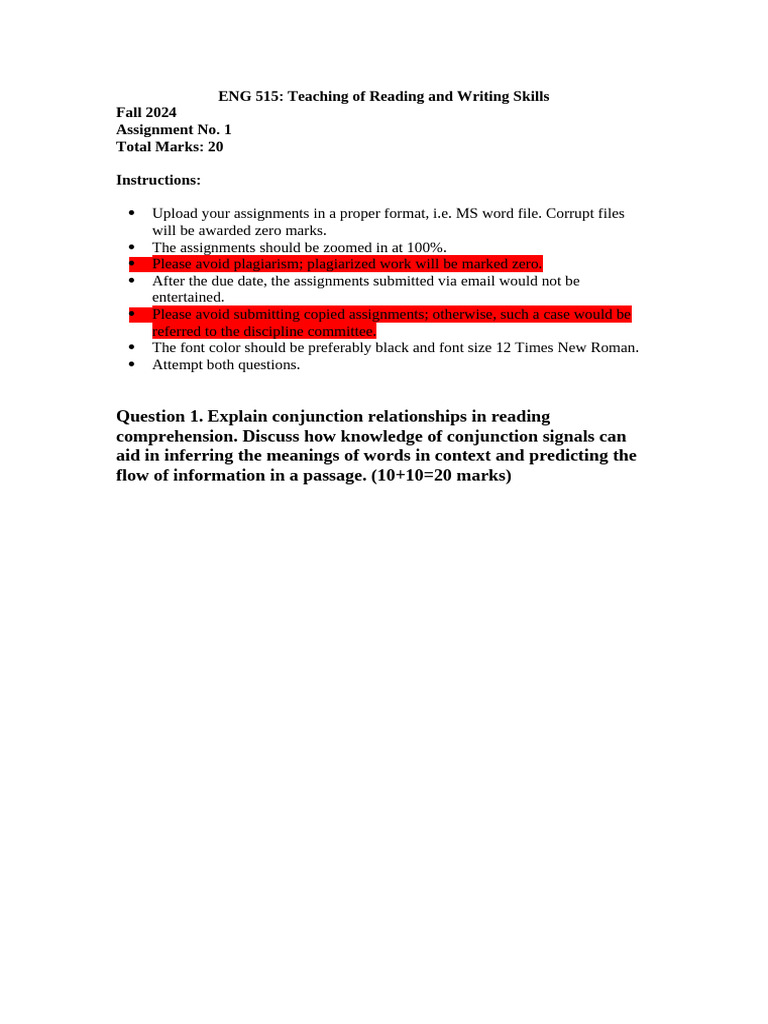 SOLUTION Eng515 handouts teaching of reading and writing skills