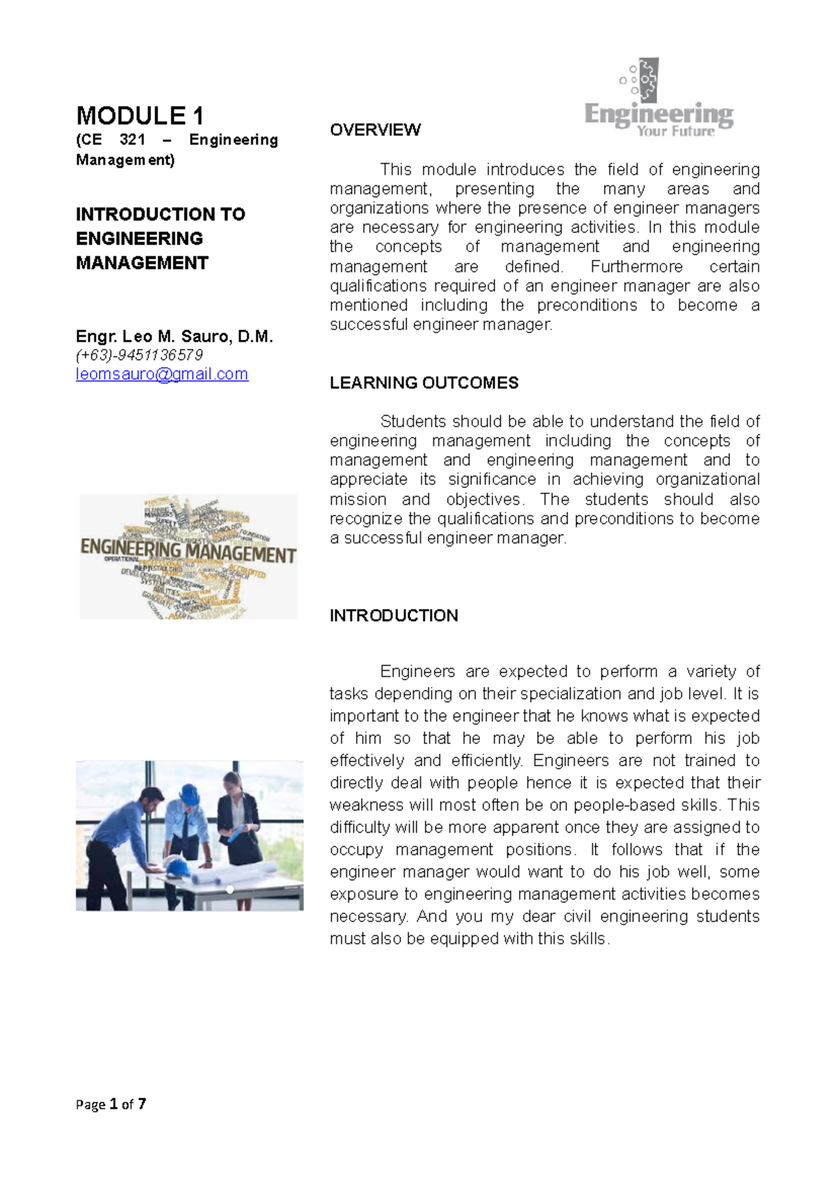 Engineering Management Chapter 1 Introduction to Engineering Management
