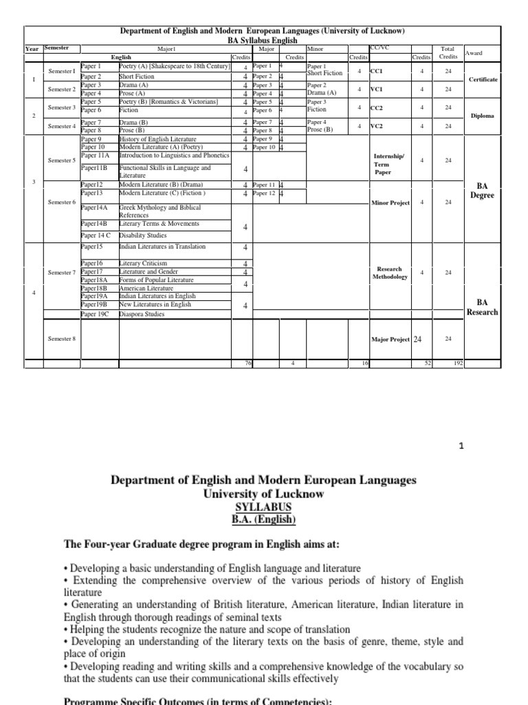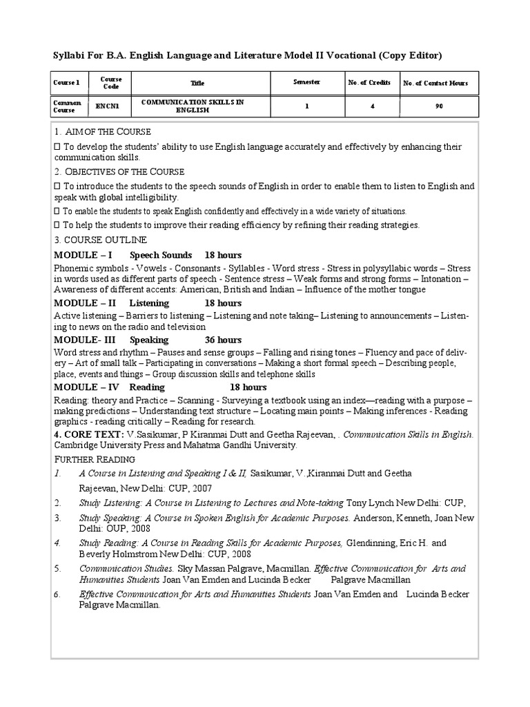 BA English Model II Syllabus PDF Poetry Stress (Linguistics)