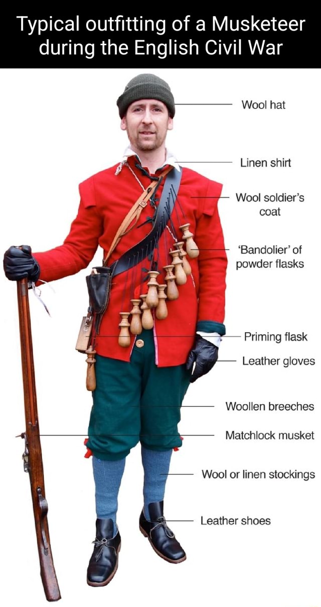 Typical outfitting of a Musketeer during the English Civil War Wool hat