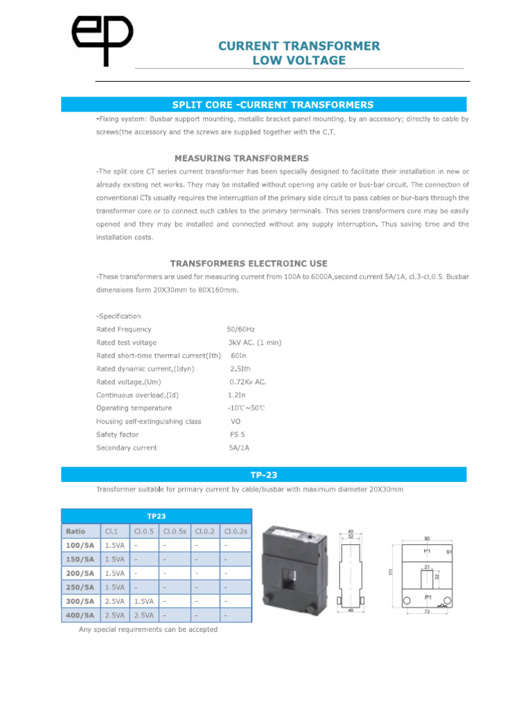 EP Current Transformer Catalogue PDF Electrical Engineering