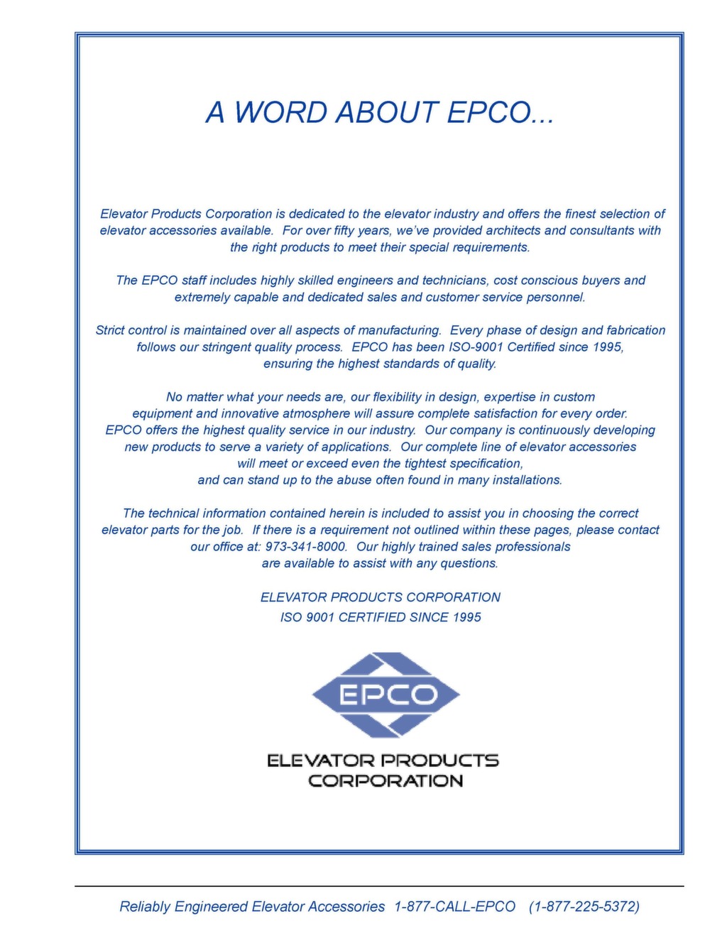 EPCO Elevator Product Brochure Elevator Products Corporation