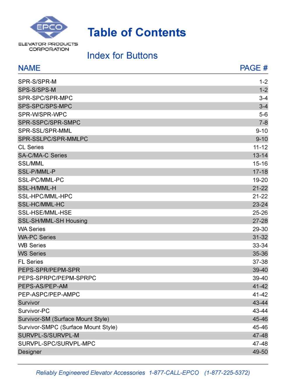 EPCO Elevator Parts Catalog Elevator Products Corporation
