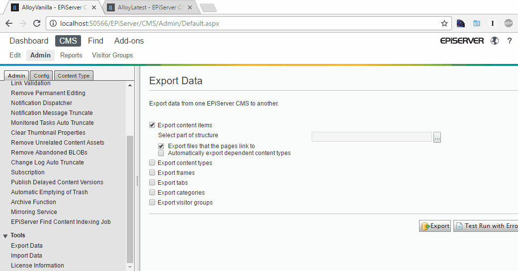 GitHub zone/Zone.Epi.ContentCopy Adds an Episerver CMS Admin tool to