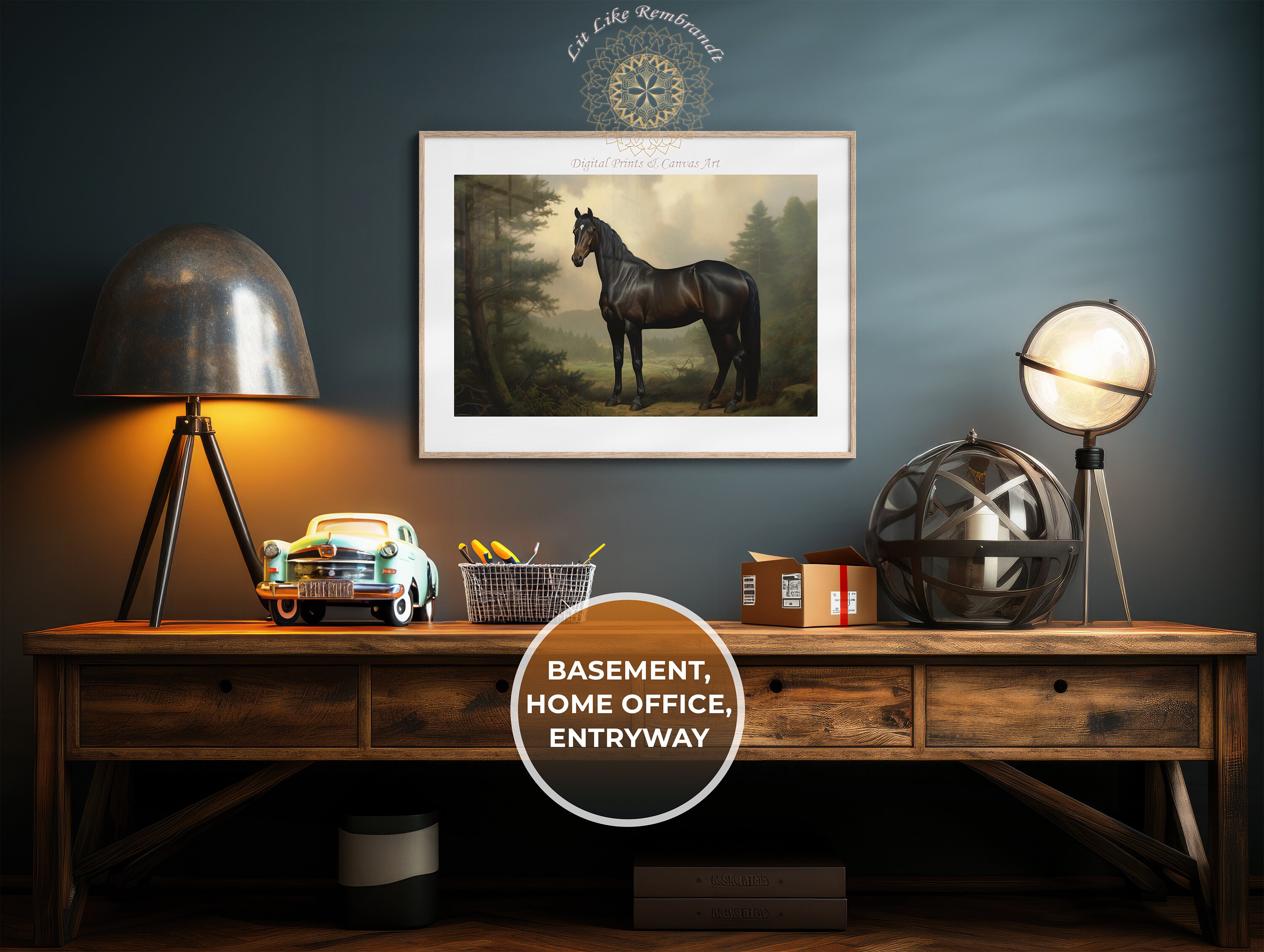 Vintage Horse Wall Art Print, Forest Landscape Wall Art, Equestrian