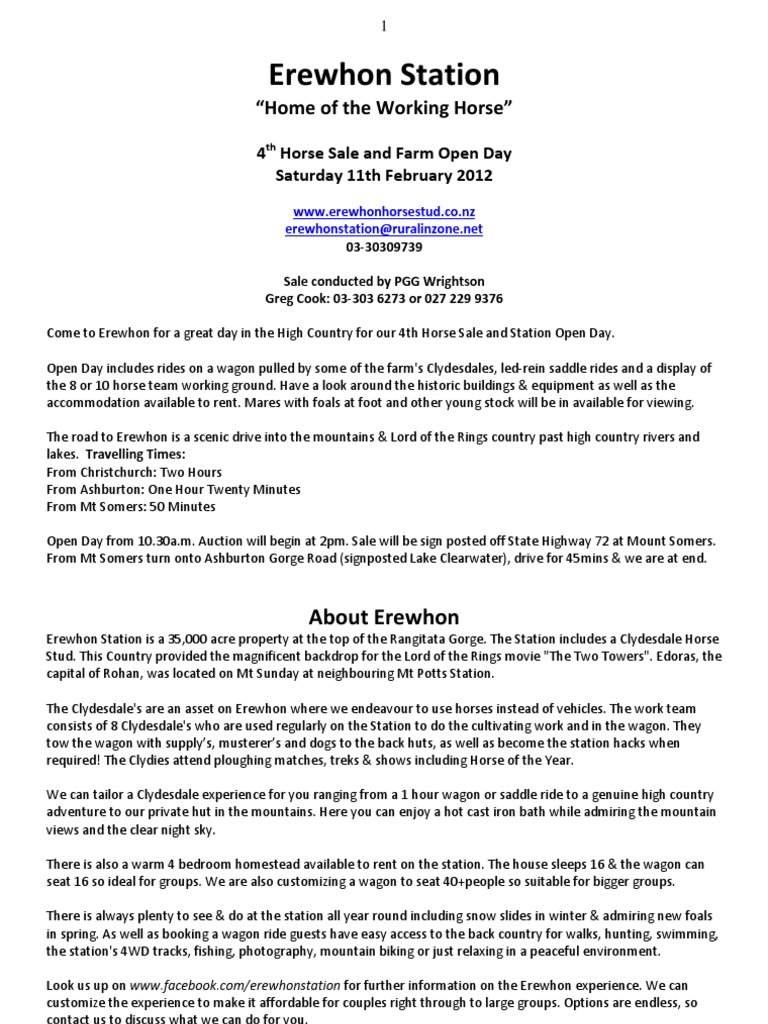 2012 Erewhon Sale Catalogue PDF Horse Breeding Mare