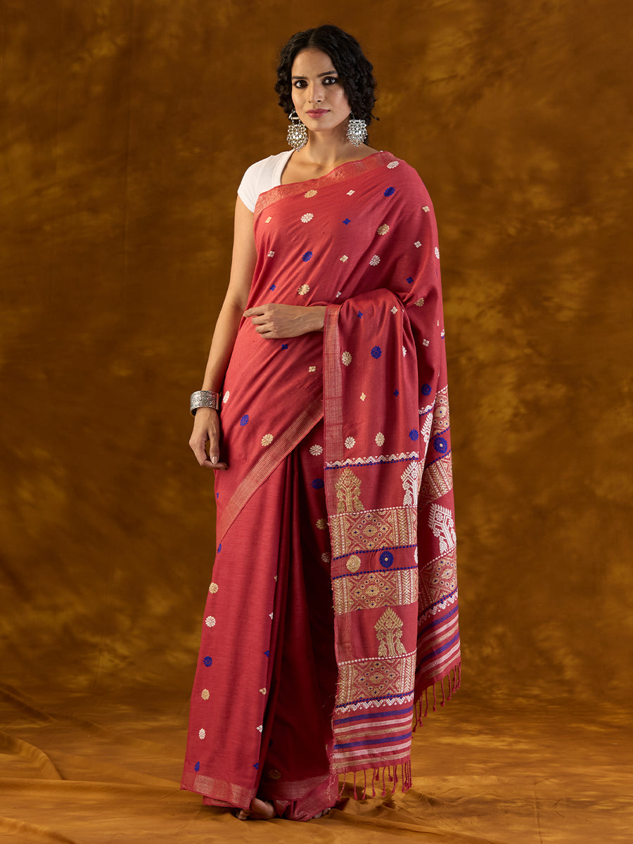 Carmine Red Eri Silk Saree The Mulberry Tree Official