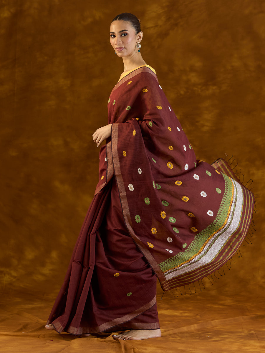 Hibiscus Maroon Raw Mulberry and Eri Silk Saree The Mulberry Tree