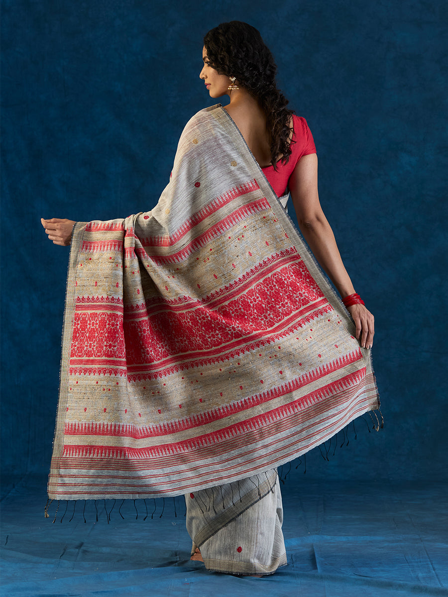 Light Grey Raw Mulberry Eri Silk Saree The Mulberry Tree Official