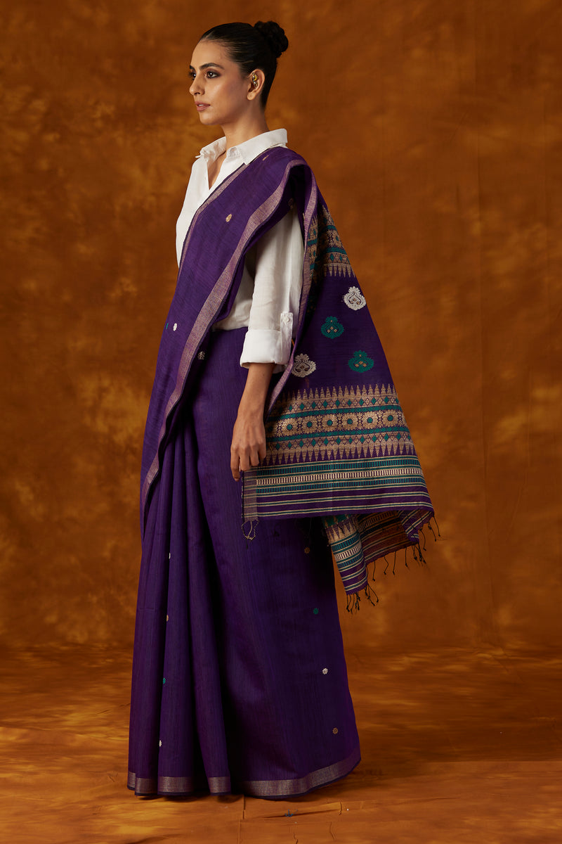 Purple Kesapaat and Eri Silk Saree The Mulberry Tree Official