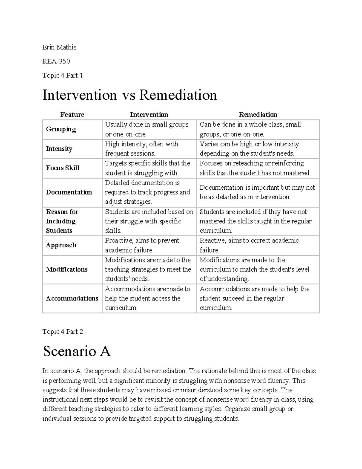topic 4 assignment Erin Mathis REA Topic 4 Part 1 Intervention vs