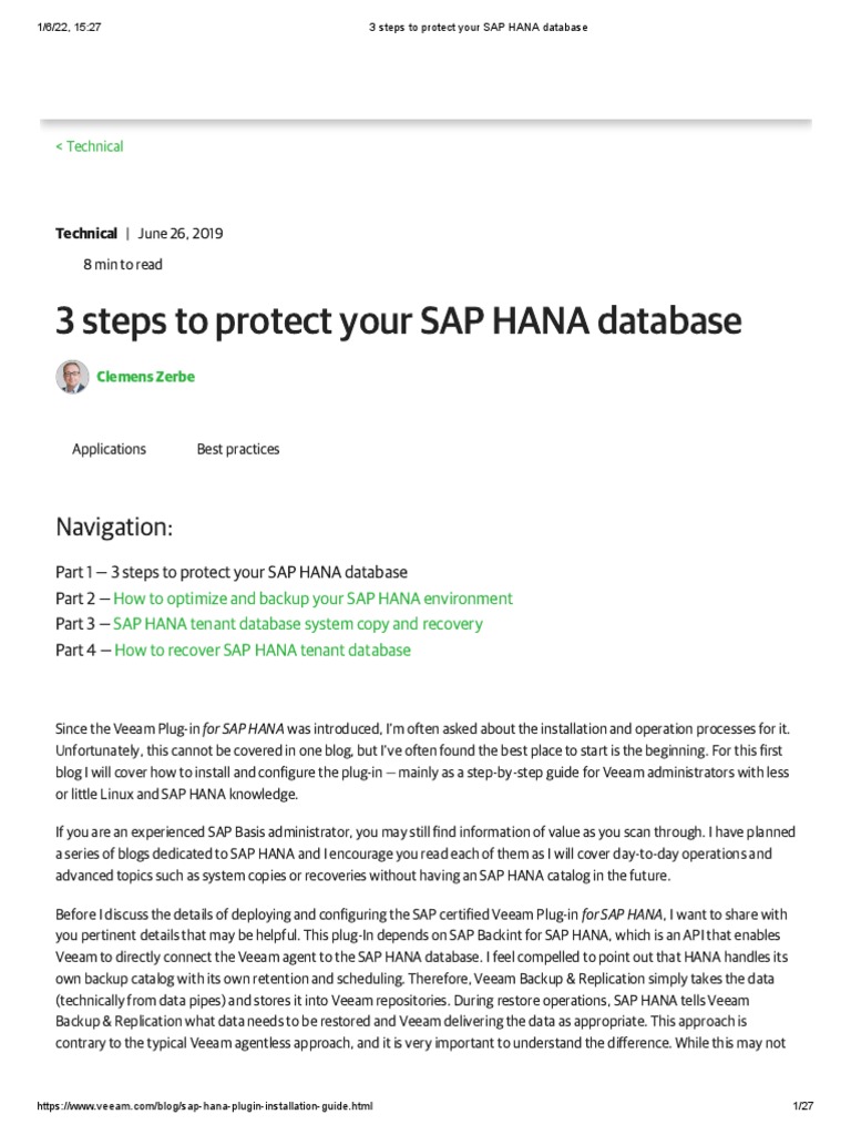 SAP HANA Veeam Backup & Replication Best Practice Guide