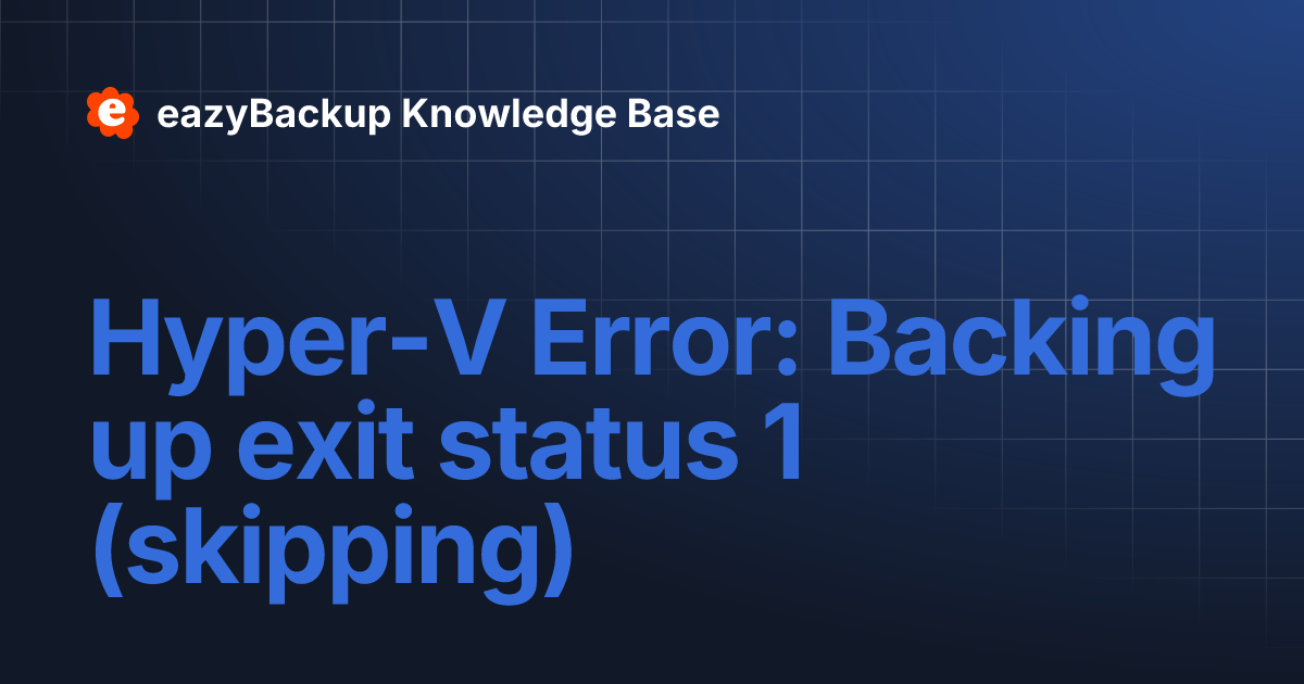 HyperV Error Backing up exit status 1 (skipping) eazyBackup