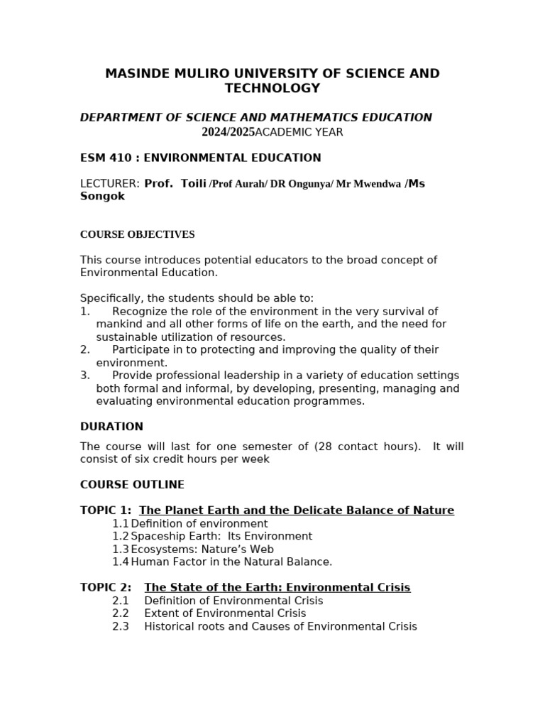 Esm Course Catalog