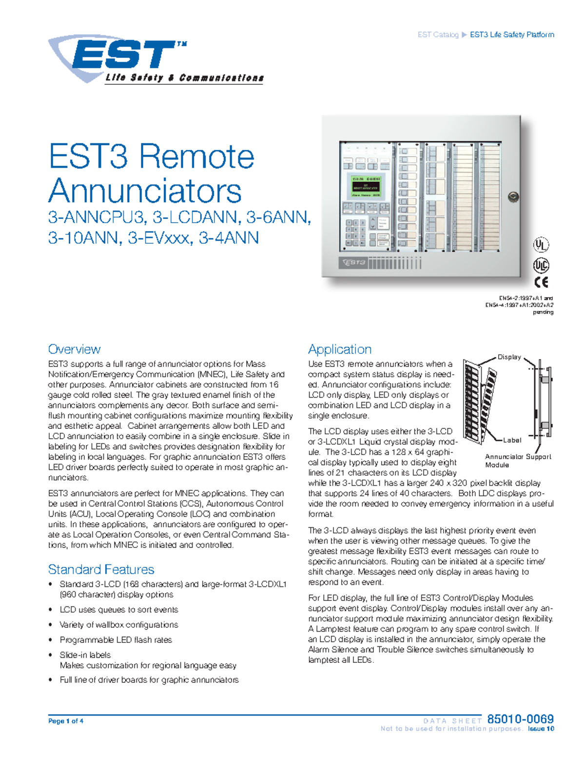 1.3CPU EST3 Remote Annunciators Page 1 of 4 D A T A S H E E T 85010