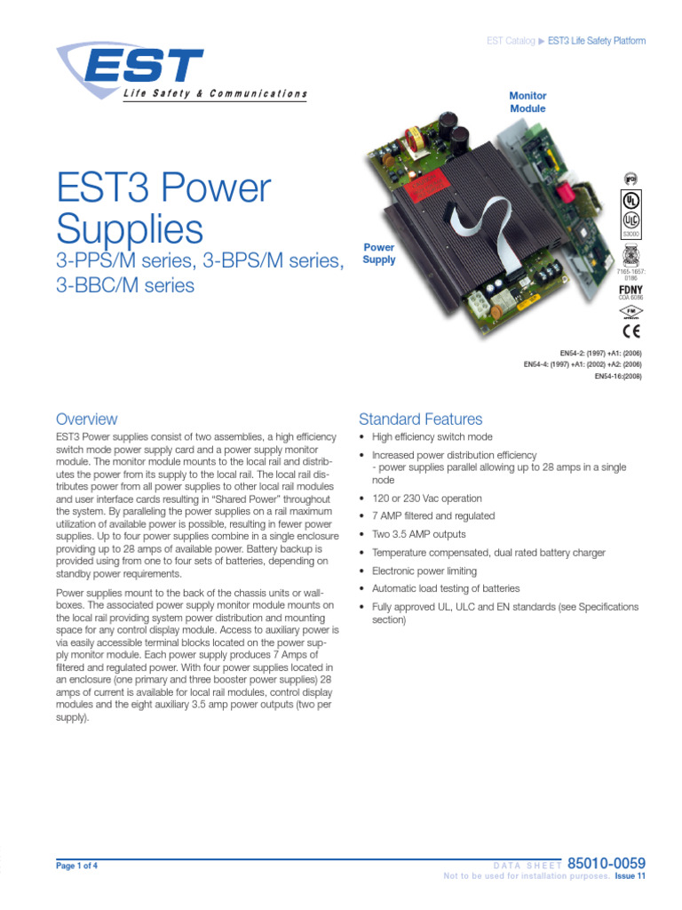 850100059 EST3 Power Supplies PDF Power Supply Battery Charger