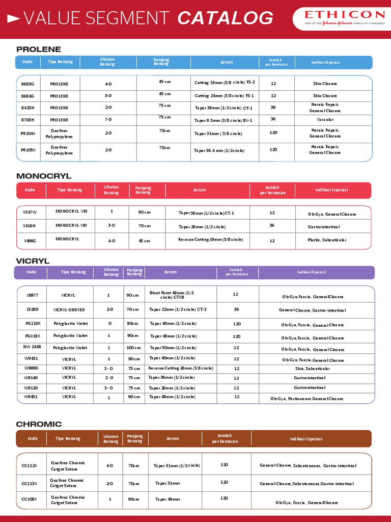 ETHICON Value Segment Catalog 2019 PDF Surgical Suture Surgery