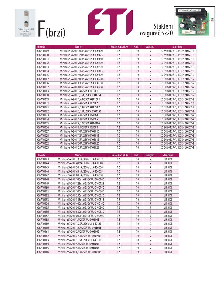 ETI Katalog Staklenih Osigurača PDF