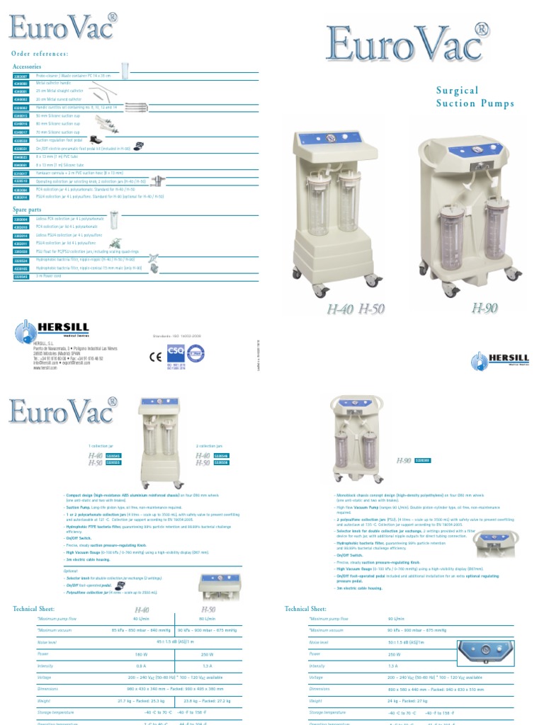 EUROVAC H 40 H 50 H 90 Surgical Suction Pumps Brochure en PDF