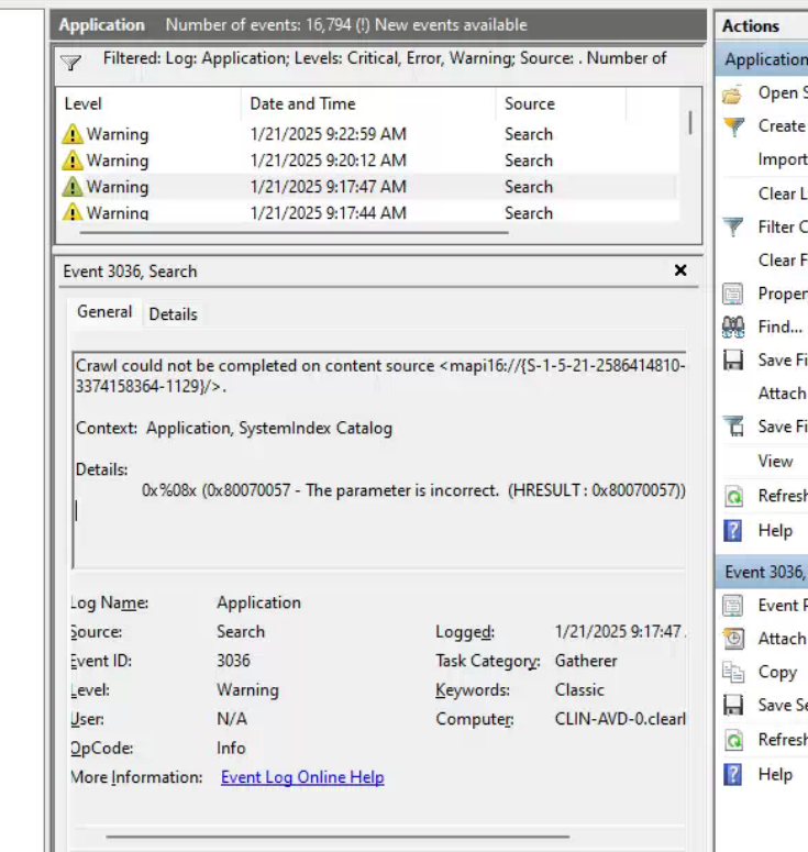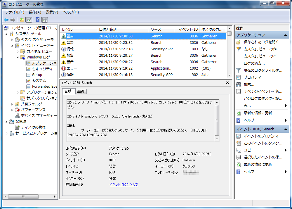 maruton's memorandum [日記]イベントログ(ソース:Search、EventID:3036)の確認と対応