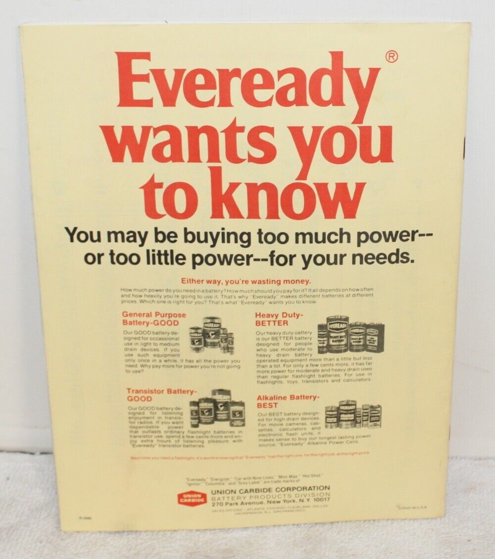 Vintage Eveready Battery Complete Line Catalog & Reference Guide 1978