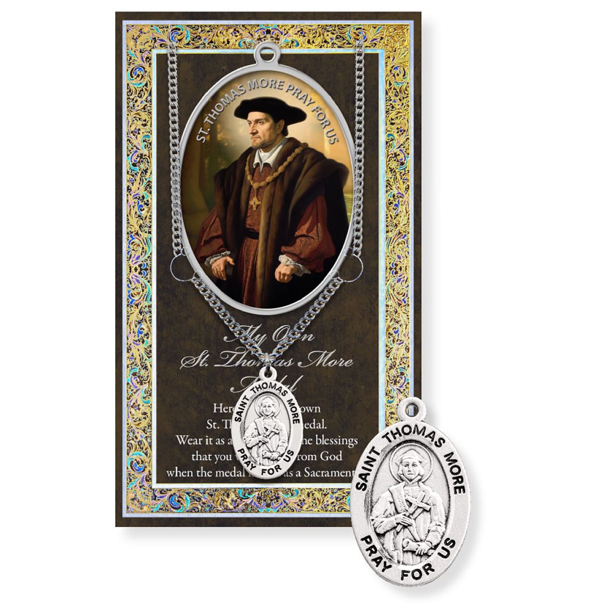 ST. THOMAS MORE HAND ENGRAVED PEWTER MEDAL ON 24” CHAIN WITH PAMPHLET