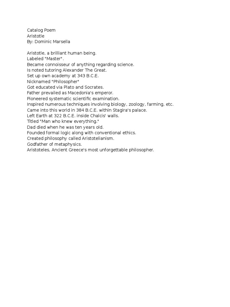 SOLUTION Write A Catalogue Poem With 20 Lines And 100 Words Studypool