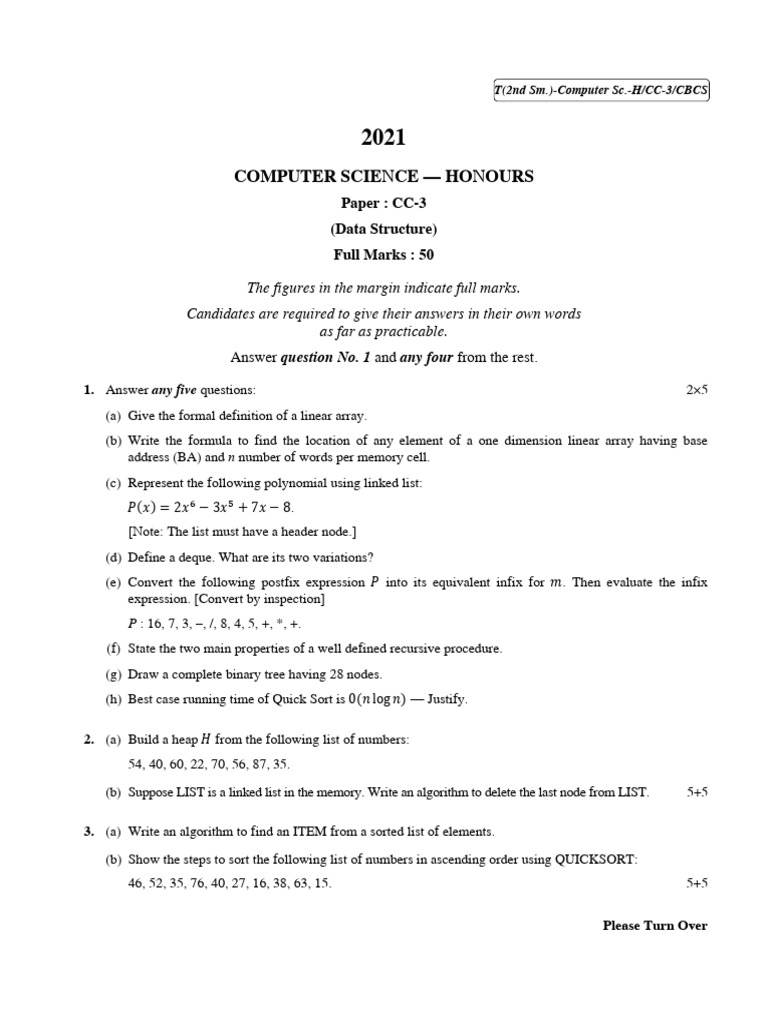 CU2021 B.Sc. (Honours) Computer Science SemesterII PaperCC3 QP