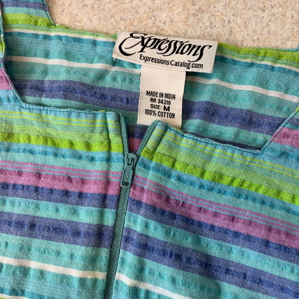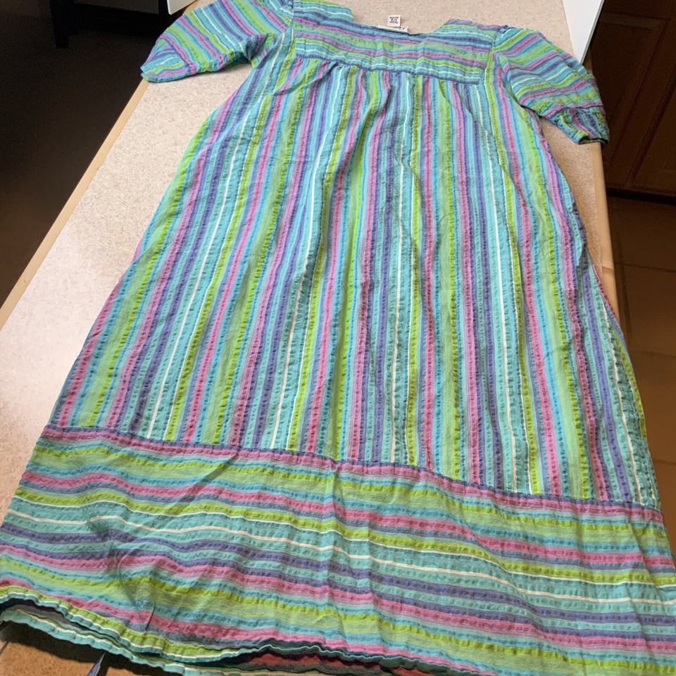Expressions Catalog Housecoat MuuMuu Searsucker Striped Cotton Women’s