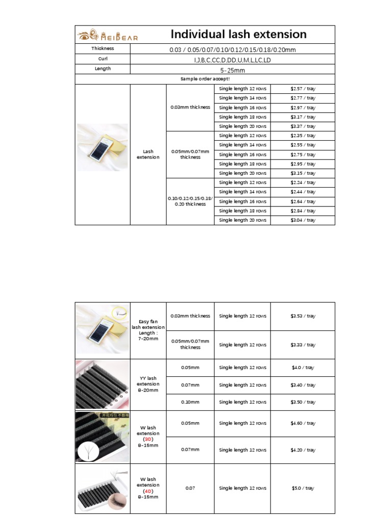 Meidear Eyelash Extension Catalog PDF Color United Parcel Service