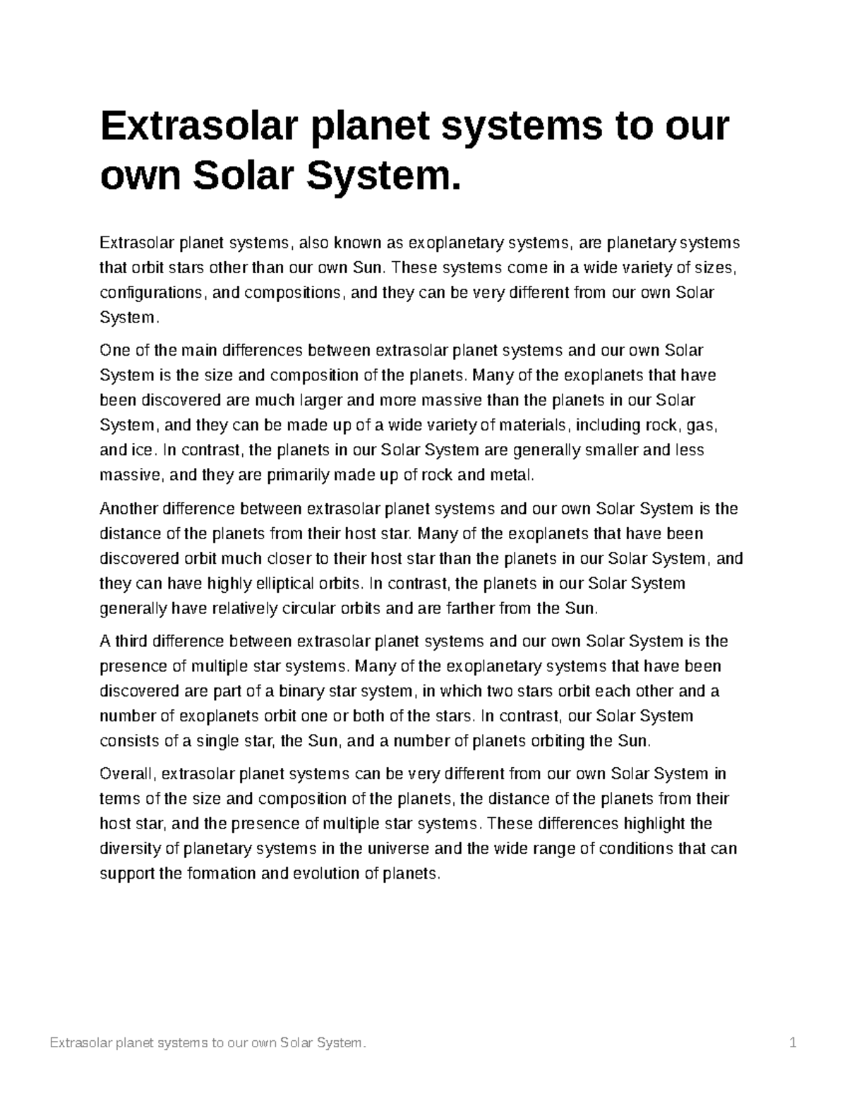 Extrasolar systems to our own Solar System 1 Extrasolar