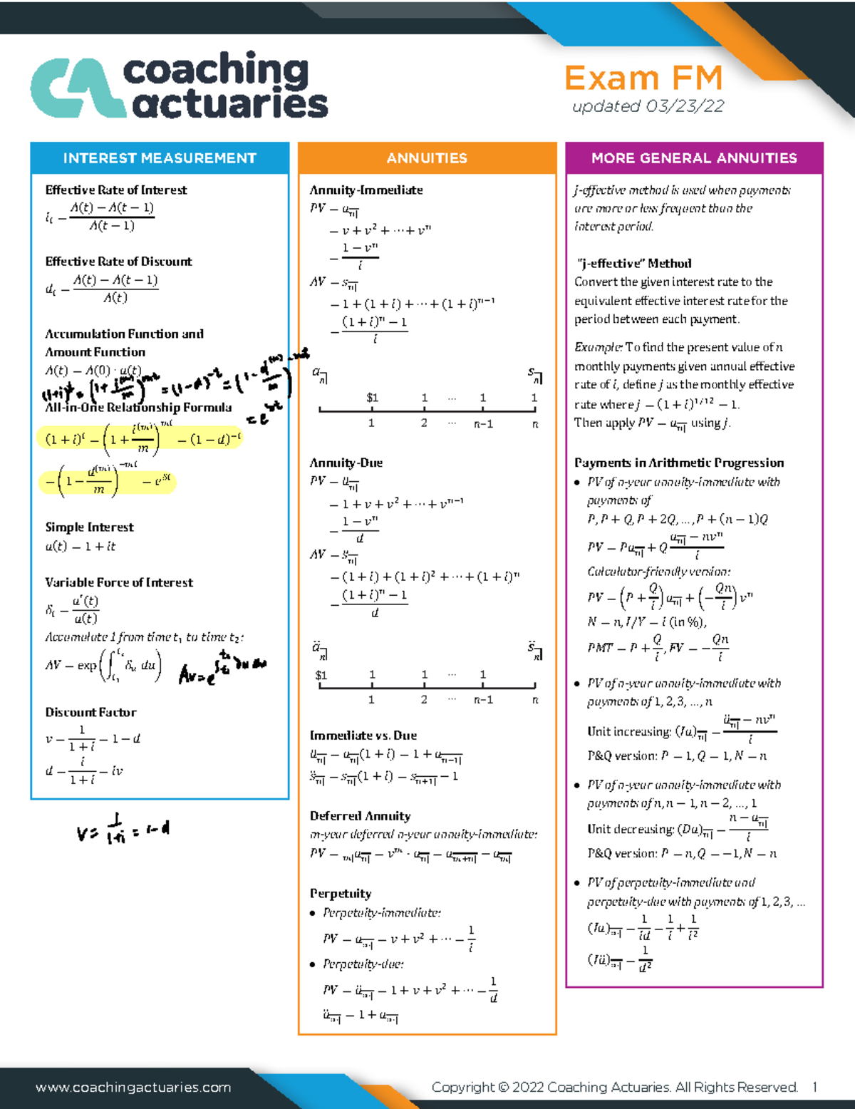 Fm formula sheet 2023 coachingactuaries Copyright © 2022 Coaching