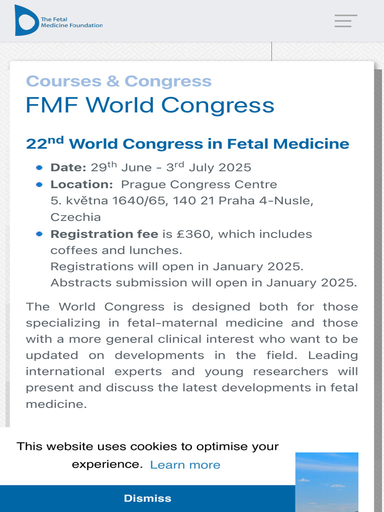 FMF World Congress Courses & Congress To The Fetal Medicine