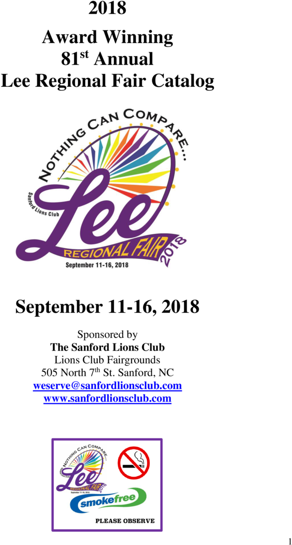 Download 2018 Award Winning 81st Annual Lee Regional Fair Catalog