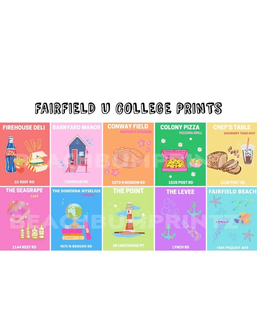 Fairfield University Preppy Posters Digital Print Bright Wall Decor
