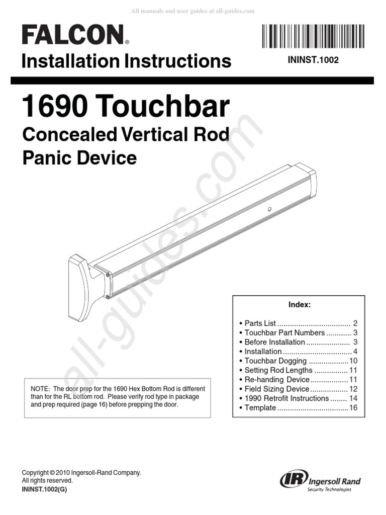 FALCON MEL 1690 Touchbar Concealed Vertical Rod Panic Device