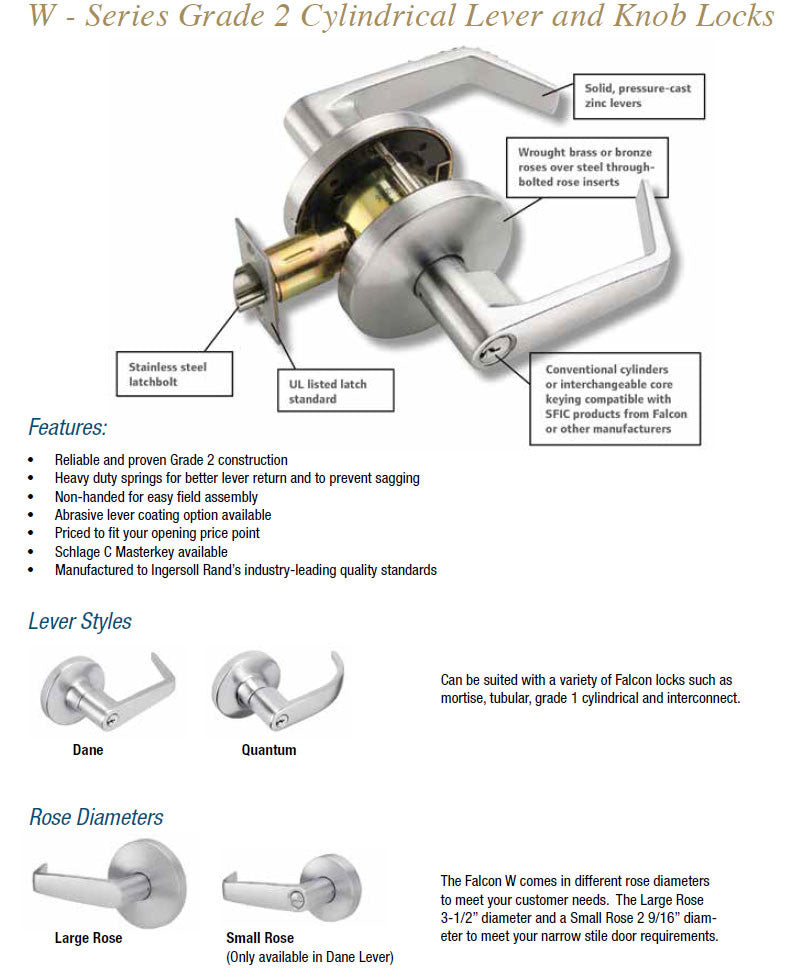 W Series Grade 2 Cylindrical Lock Falcon Products