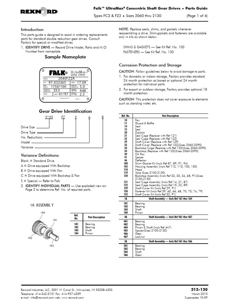 313 130 Falk UltraMax Type FC2, FZ2, Sizes 2060 2130, 60 130 Gear
