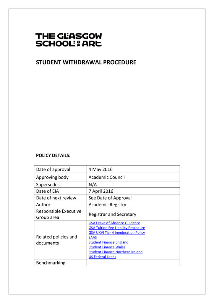 Student Withdrawal Procedure GSA Documents