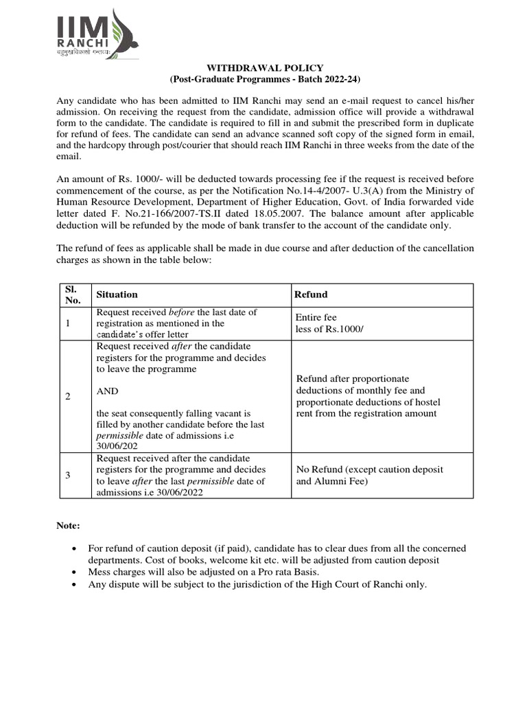 Withdrawal Policy Sl. No. Situation Refund PDF Government