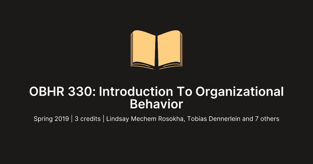 OBHR 330 Introduction To Organizational Behavior