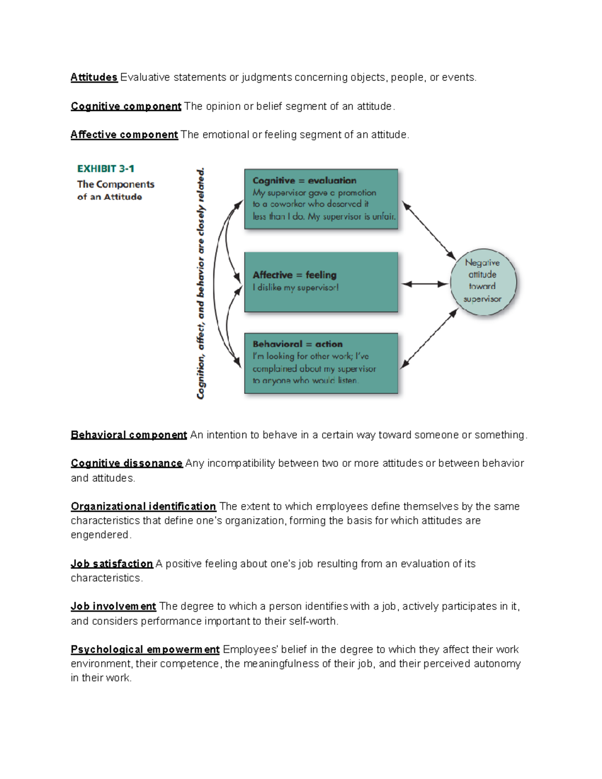 Obhr 330 chap 3 summary Attitudes Evaluative statements or