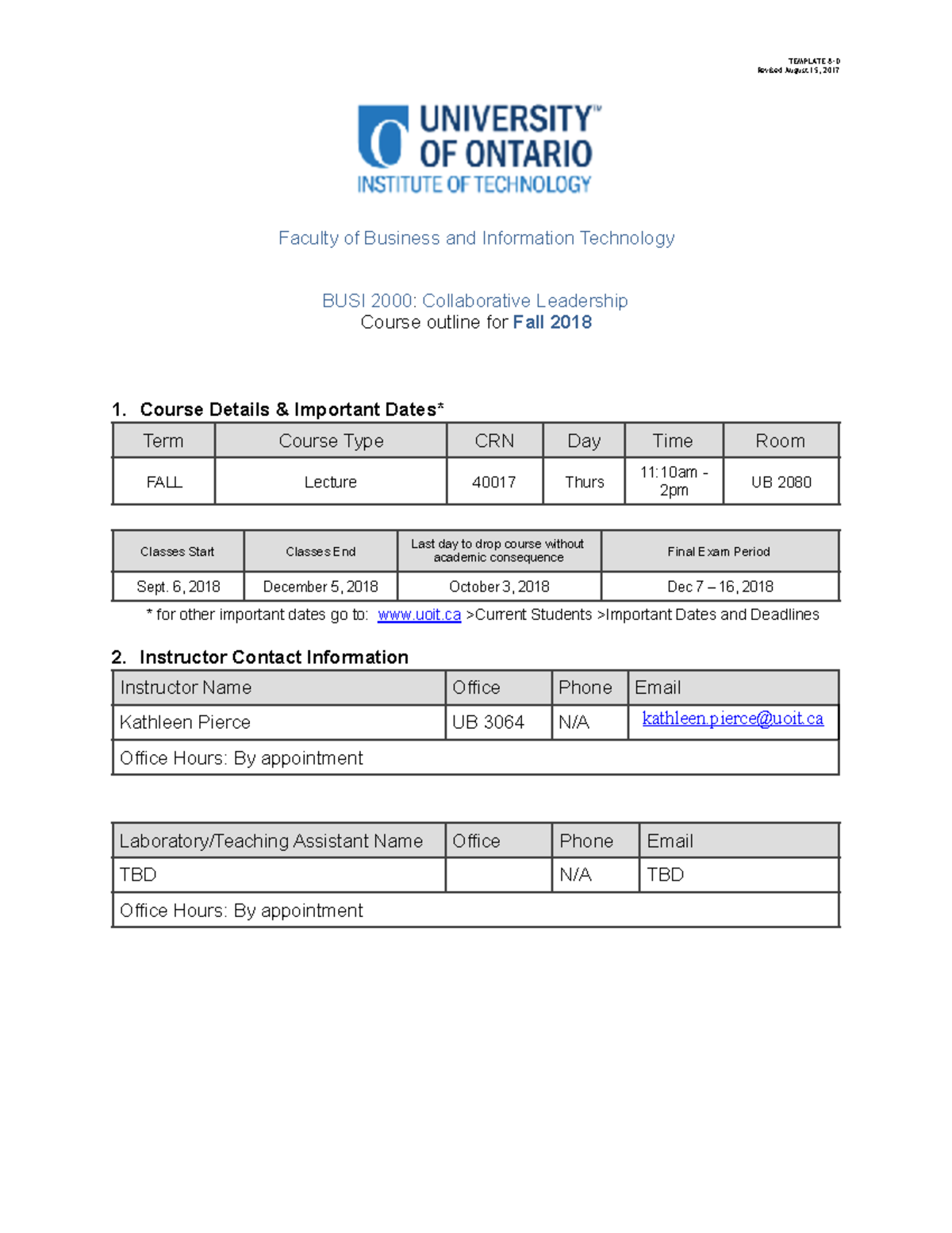 BUSI 2000 Fall 2018 Course outline Faculty of Business and