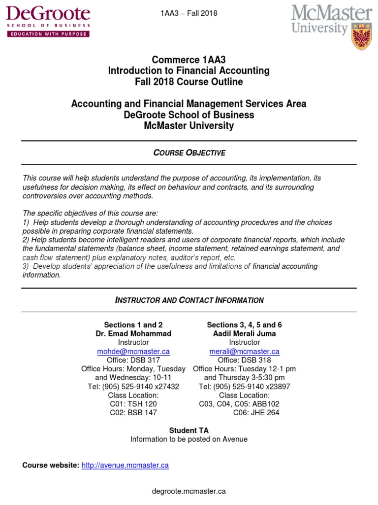 Fall 2018 Course Outline PDF Test (Assessment) Financial Statement