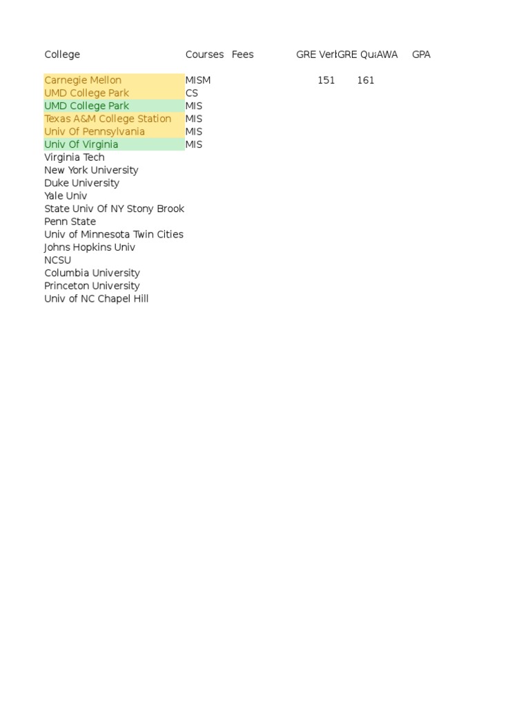 UMD College Park Carnegie Mellon UMD College Park Texas A&M College